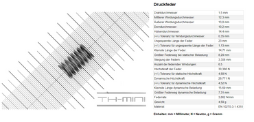 Die Feder hat 6,5 federnde Windungen mit einer Steigung von 3,308 mm.